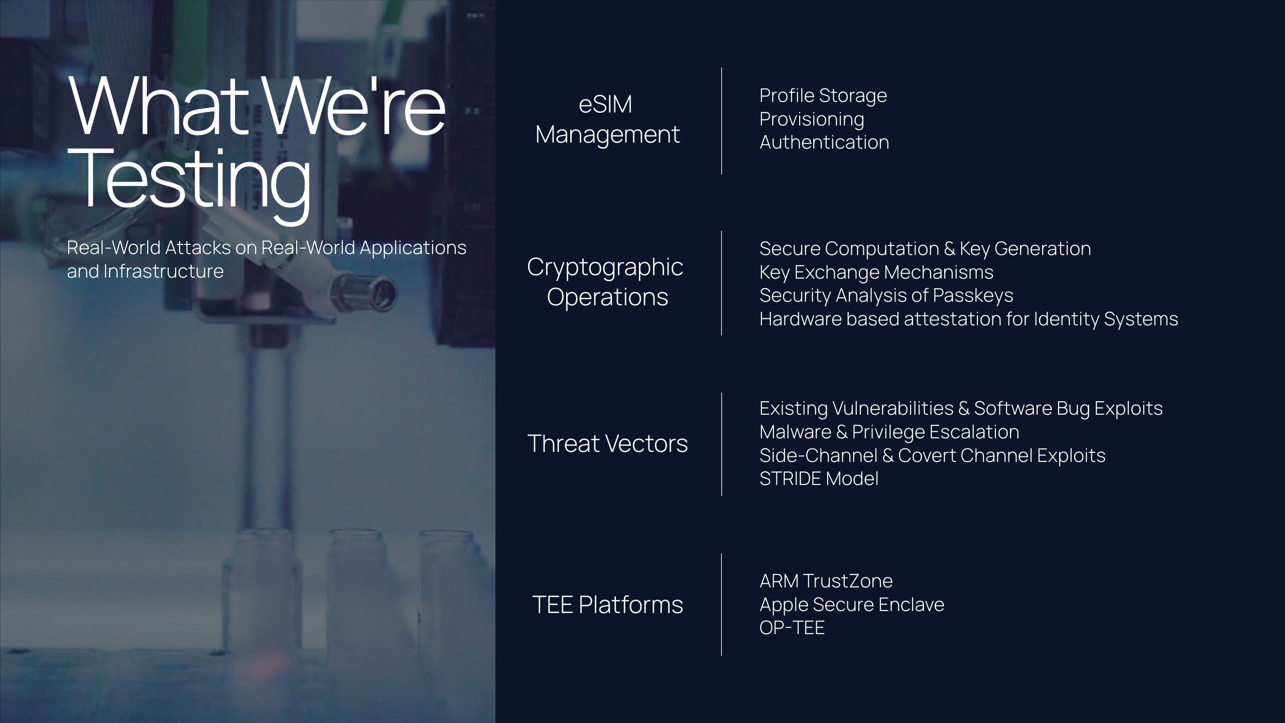 Our project aims to close that gap. We’re launching a 9-month open research effort to rigorously study how TEEs are used in consumer mobile hardware for eSIM management and cryptographic operations.
